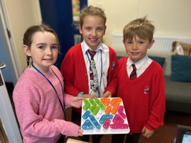 Grace, Paige and James were very pleased with themselves this morning! They worked hard together in breakfast club to solve this puzzle. It was harder than it looks! Great perserverance and team work!