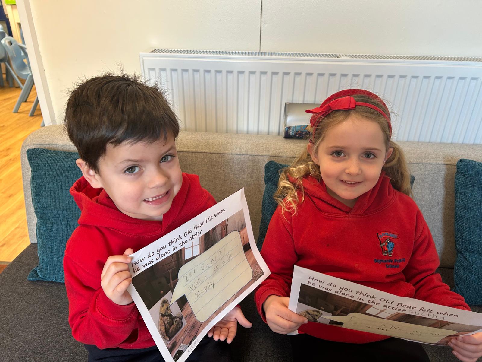 Elias and Tabitha worked really hard to use their phonics to write about Old Bear. They were very proud of themselves! Well done both of you!
