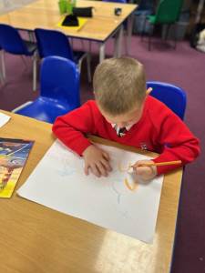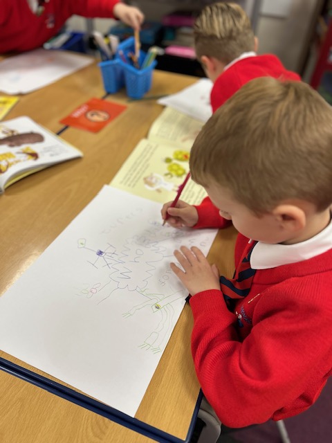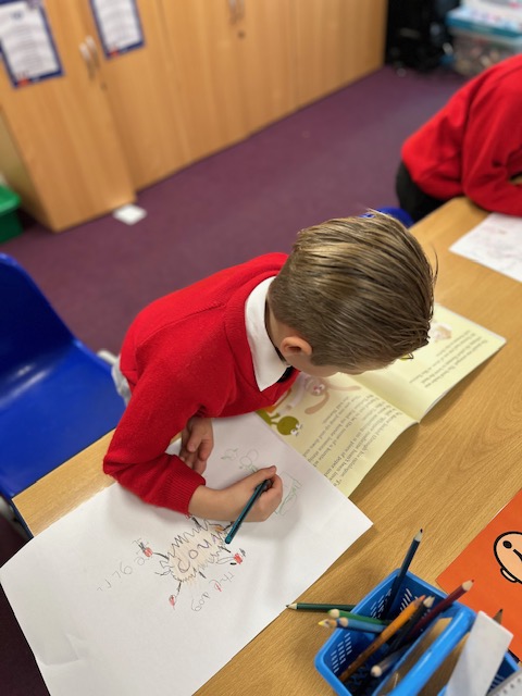 Some children have been working with Mrs Alcon to improve their writing. They are using Colourful Semantics which is a fun and visual way to help children understand and build sentences. It uses colours to represent different parts of a sentence, helping children understand how words fit together to make meaning.