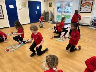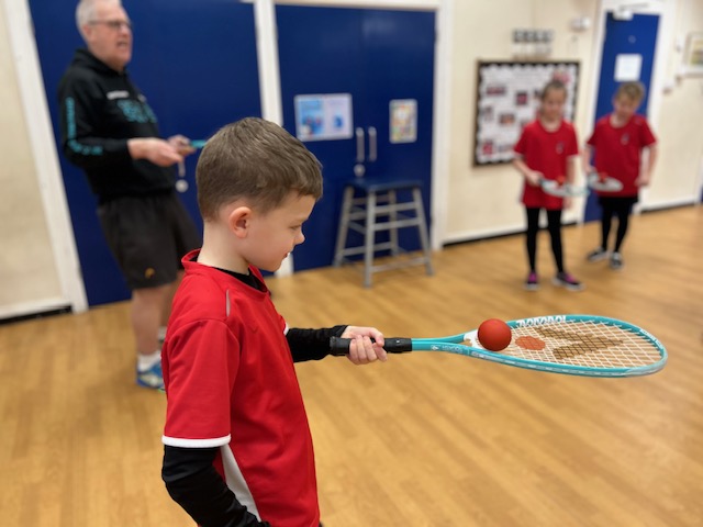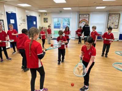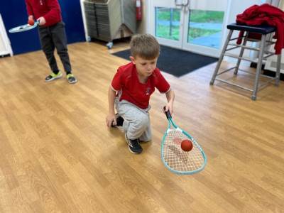 Class 3 were very happy to start their squash lessons again. For the Year 3 children, this was their first lesson and Year 4 children were building on everything they learned last year. This lesson was all about ball control and how to hold and use the racquet correctly. Not as easy as you'd think...the lesson included kneeling, laying down and standing, all whilst keeping the ball on the racquet! They ended the session by seeing who could hop on one leg and still keep the ball safe! Great first lesson of the year class 3!