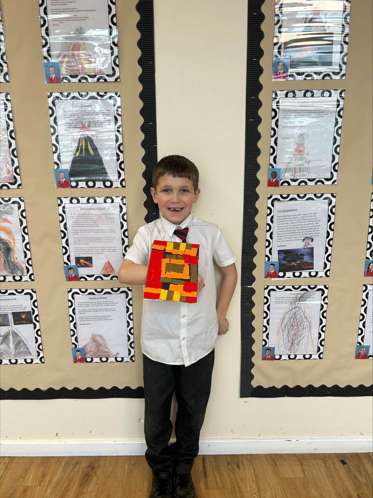 Class 3 have been writing vivid description Mount Vesuvius erupting in Pompeii. All week they have been writing and editing their work, making sure they have used a variety of techniques including powerful verbs, adverbs, fronted adverbials, and adjectives. Finally they used the laptops to type their finished piece. The last step is to illustrate their writing with a drawing of a volcano. The writing will then be displayed outside class 3.
