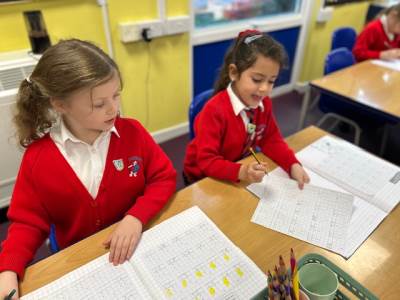 Class 2 have been working hard in maths. They wanted to have some pictures on the website of them busy learning! Well done Class 2 and keep working hard!
