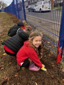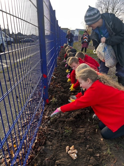 As part of our 'Watch us Grow' project, today every child in the school helped plant nearly 1,000 bulbs on the school grounds. They were helped by some amazing volunteers including Quincy's mum and dad, Archer Wicken's mum, Henry Smethurst's Nanny, Miss Dale and Chris Osbourne from the Local Council. The children had a fantastic time and are very excited to watch the bulbs bloom in the Spring. Well done to everyone and THANKYOU from all at Baynards.