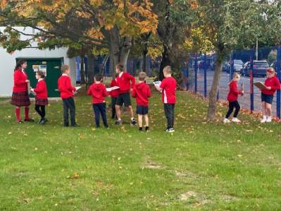Step one of the process was to mark the boundaries of the school grounds and then map the habitats. We were really pleased to have Louis from RHS come along to support the children as they researched the area, using flow charts to identify and label different habitats.