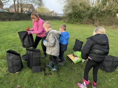 As part of our 'Watch us Grow' project, today every child in the school helped plant nearly 1,000 bulbs on the school grounds. They were helped by some amazing volunteers including Quincy's mum and dad, Archer Wicken's mum, Henry Smethurst's Nanny, Miss Dale and Chris Osbourne from the Local Council. The children had a fantastic time and are very excited to watch the bulbs bloom in the Spring. Well done to everyone and THANKYOU from all at Baynards.
