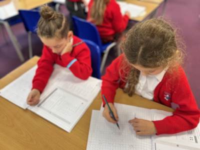 Class 2 have been working hard in maths. They wanted to have some pictures on the website of them busy learning! Well done Class 2 and keep working hard!