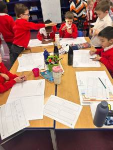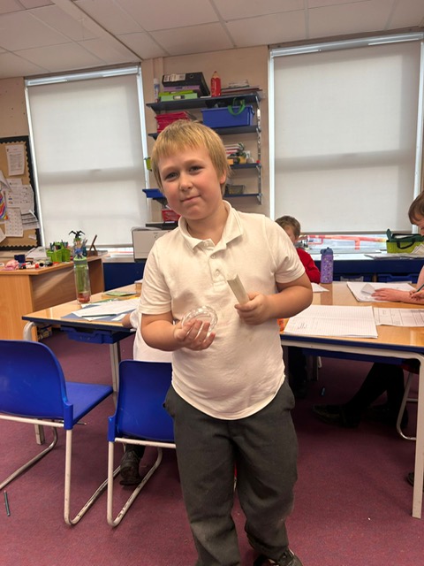 In our science lesson, we made telephones using plastic cups and string to investigate how sound travels. We spoke into one cup and listened at the other to see what would happen. We tested different lengths of string and also tried pulling the string loosely and tightly. We discovered that the sound travelled best when the string was pulled tight and was longer. This is because the vibrations from our voices moved more easily along the string when it was stretched, carrying the sound more clearly from one cup to the other.